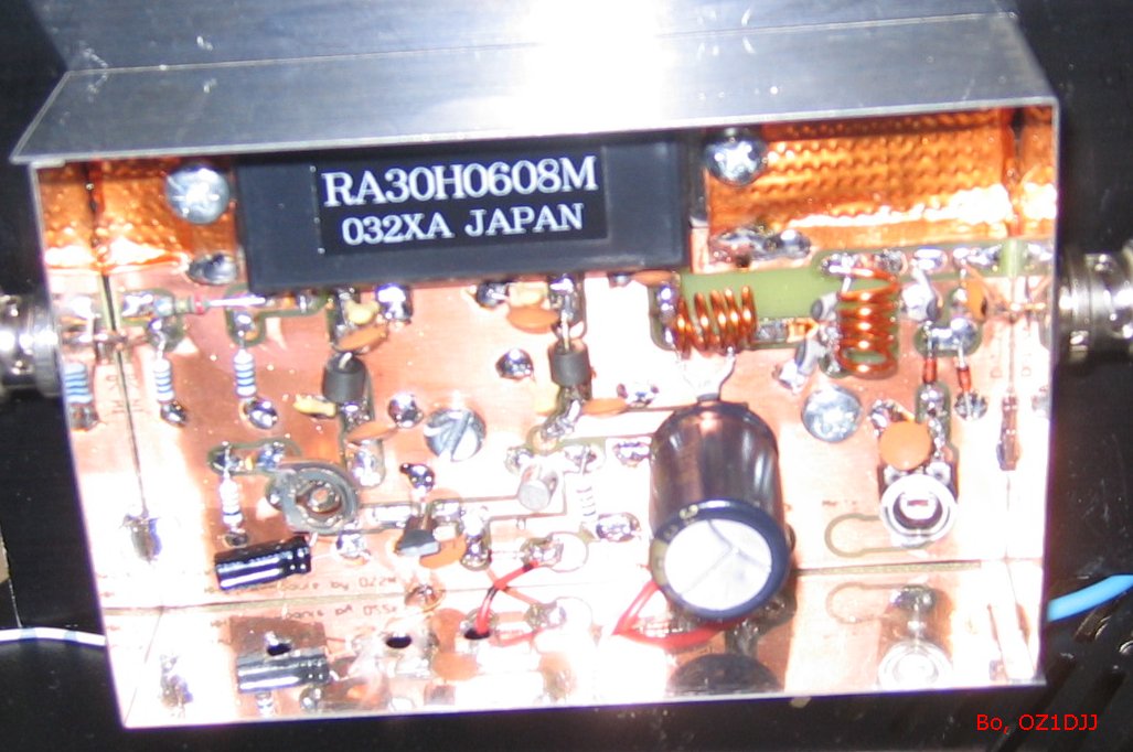 Men hvordan laves 25 W? Tja, det er der ikke noget endegyldigt svar på. Faktisk kan det gøres på et utal af måder. Nogle vil måske bygge et PA fra grunden med to-tre transistorer, andre vil måske tage et PA fra en landmobil radio og hvis det skal bruges til SSB tilføje et bias-kredsløb. Denne konstruktion anvender et fix-og-færdig 30 W, 68-88 MHz powermodul fra Mitsubishi, se ref. 1.