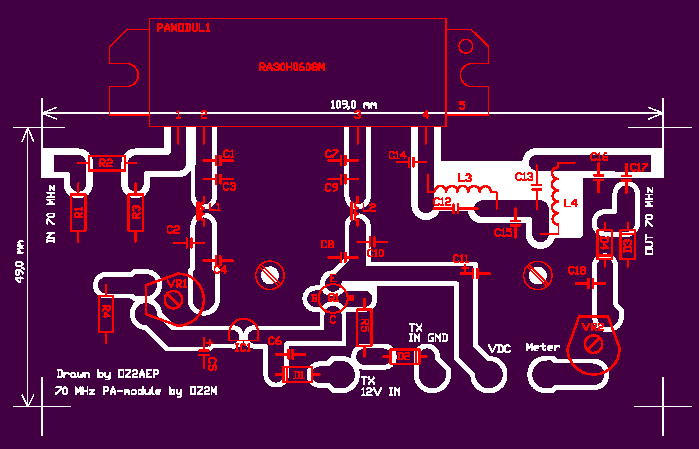 I forbindelse med arbejdet omkring dette power-modul PAet skal der lyde en kæmpe tak til Erik, OZ1TF, som tilbød at rentegne diagram og lave et professionelt printudlæg.