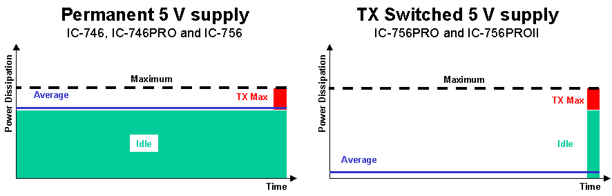 In professional radio products the design guide is 90% standby, 5% RX and 5% TX. If similar rules are applied in the IC-746PRO IC151 is idle 95% of the time and 5% TX, but in the IC-756PROII there is no idle only 5% TX.